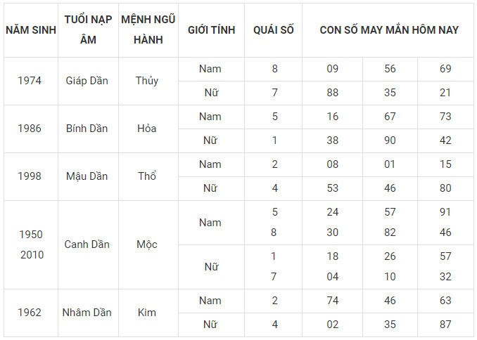 Con số may mắn hôm nay 26/1/2024 của tuổi Dần