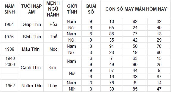 Con số may mắn hôm nay 27/10/2024 của tuổi Thìn