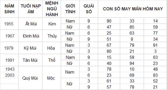 Con số may mắn hôm nay 27/10/2024 của tuổi Mùi