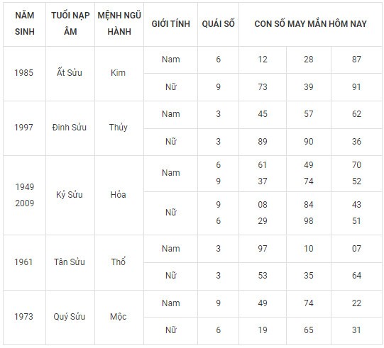 Con số may mắn hôm nay 28/2/2024 của tuổi Sửu
