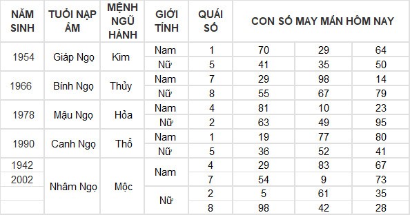 Con số may mắn hôm nay 5/5/2024 của tuổi Ngọ