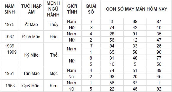 Con số may mắn hôm nay 6/11/2024 của tuổi Mão