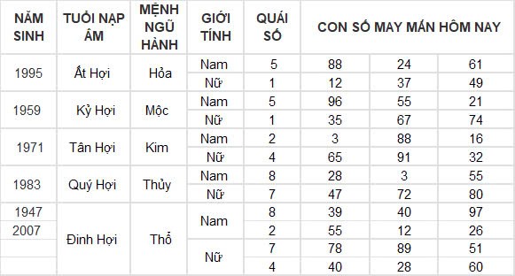 Con số may mắn hôm nay 6/11/2024 của tuổi Hợi