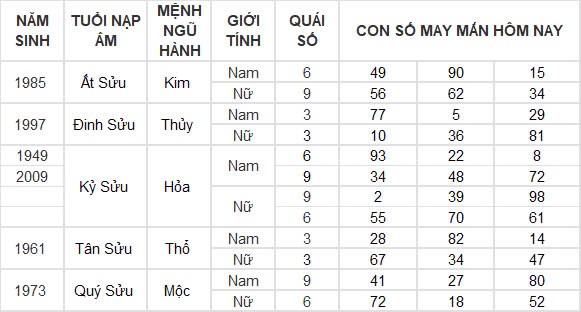 Con số may mắn hôm nay 6/11/2024 của tuổi Sửu