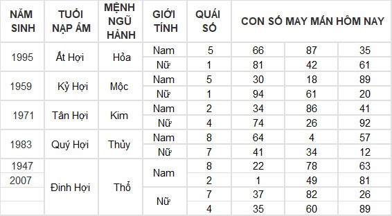 Con số may mắn hôm nay 9/7/2024 của tuổi Hợi
