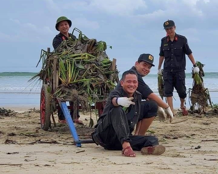 Các cán bộ chiến sỹ thuộc Tiểu Đoàn Cảnh sát cơ động, Phòng Cảnh sát cơ động Công an TP Đà Nẵng đã cùng các lực lượng chức năng và người dân dọn sạch nhiều bãi biển dọc tuyến đường Hoàng Sa, Trường Sa, Nguyễn Tất Thành...