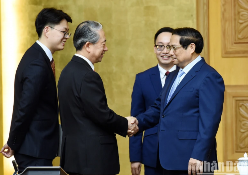 | Thủ tướng Phạm Minh Chính và Đại sứ Trung Quốc tại Việt Nam Hùng Ba. (Ảnh: THANH GIANG) |