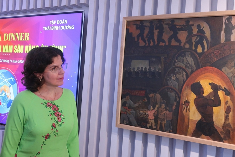 | Đại sứ Lianys Torres Rivera cùng đoàn đại biểu tham quan phòng tranh tại Tập đoàn Thái Bình Dương. |