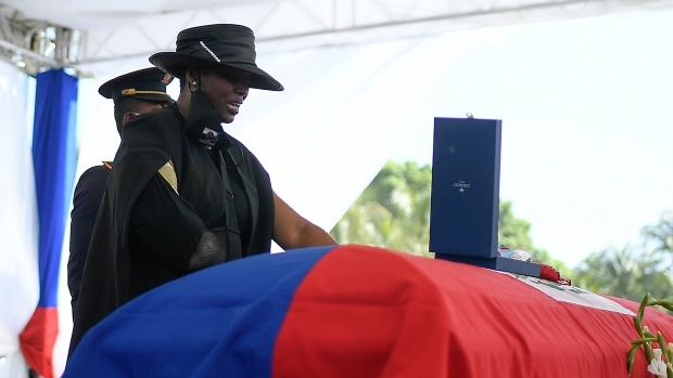 Theo diễn biến, tại tang lễ, cựu Đệ nhất phu nhân Martine Moise đặt tay lên linh cữu của chồng rồi đưa lên ngực trong tiếng hô của người biểu tình "Công lý! Công lý!".