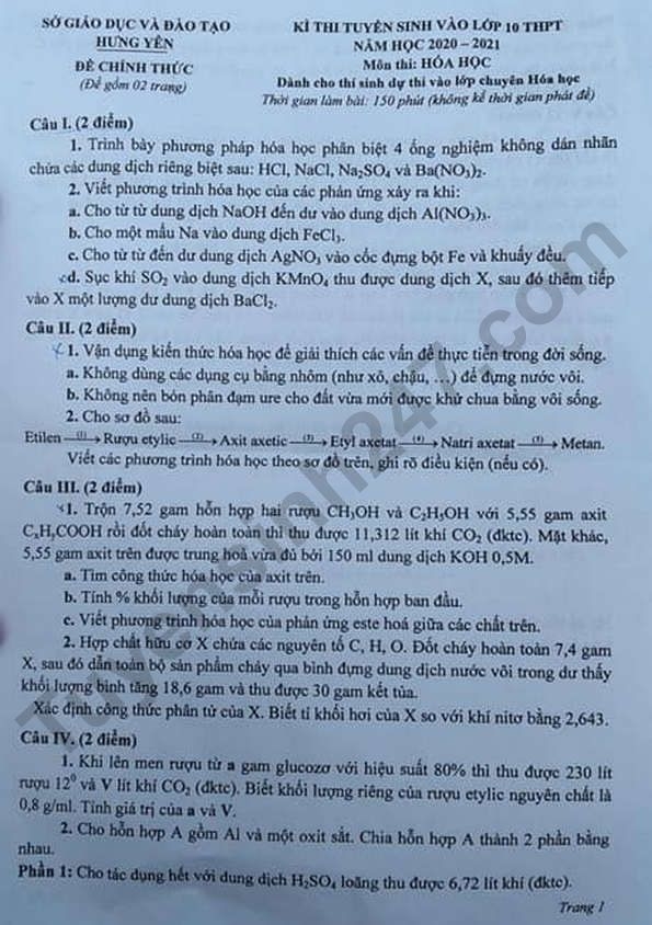 Đáp án đề thi tuyển sinh lớp 10: Dưới đây là đáp án đề thi Anh văn tuyển sinh lớp 10 của Sở GD tỉnh Ninh Bình năm học 2020 - 2021.