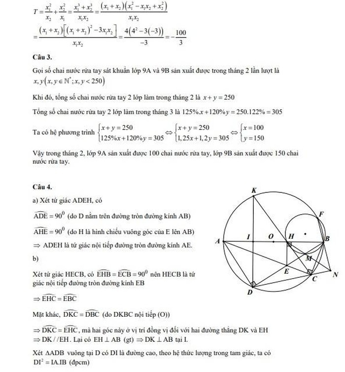 Đáp án đề thi môn Toán tuyển sinh lớp 10: Dưới đây là đáp án đề thi vào lớp 10 của Sở GD tỉnh Nghệ An năm học 2020 - 2021.