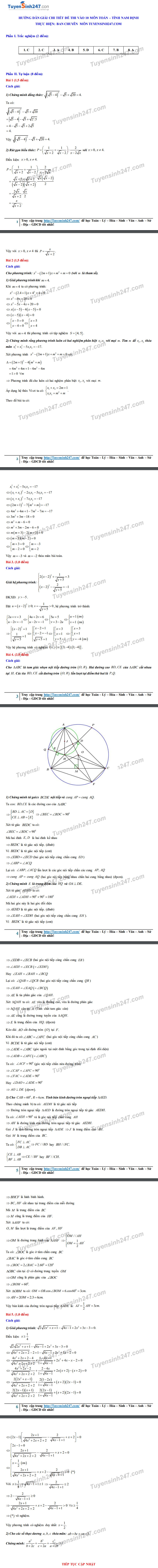 Đáp án đề thi môn Toán tuyển sinh lớp 10: Dưới đây là đáp án đề thi vào lớp 10 của Sở GD tỉnh Nam Định năm học 2020 - 2021.