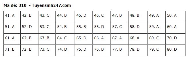 Bài thi môn Địa lý nằm trong tổ hợp Khoa học xã hội (gồm các phân môn Địa lý, Lịch sử, Giáo dục công dân) theo hình thức trắc nghiệm khách quan, trong tổng thời gian 150 phút.(Gợi ý đáp án môn Địa lý được Hệ thống Giáo dục HOCMAI; Ban chuyên môn Tuyensinh247 thực hiện)