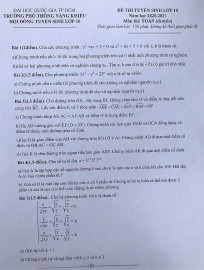 Đề thi môn Toán tuyển sinh lớp 10 vào THPT Chuyên Toán TP Hà Nội năm 2020