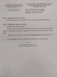 | Đề thi môn sinh học của Trường THPT chuyên Khoa học Tự nhiên năm 2020 |