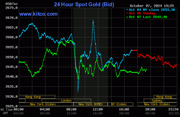 Hiện, giá vàng giao ngay trên Kitco đang ở mức 2.643,4 USD/ounce, giảm 9,9 USD, tương đương 0,37% giá trị so với chốt phiên trước. Quy đổi theo tỷ giá tại Vietcombank, giá vàng thế giới đang được giao dịch ở mức 79,8 triệu đồng/lượng, thấp hơn giá vàng trong nước khoảng 4,2 triệu đồng/lượng.