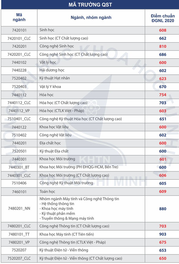 Điểm chuẩn đánh giá năng lực Đại học Quốc gia TP HCM 2020