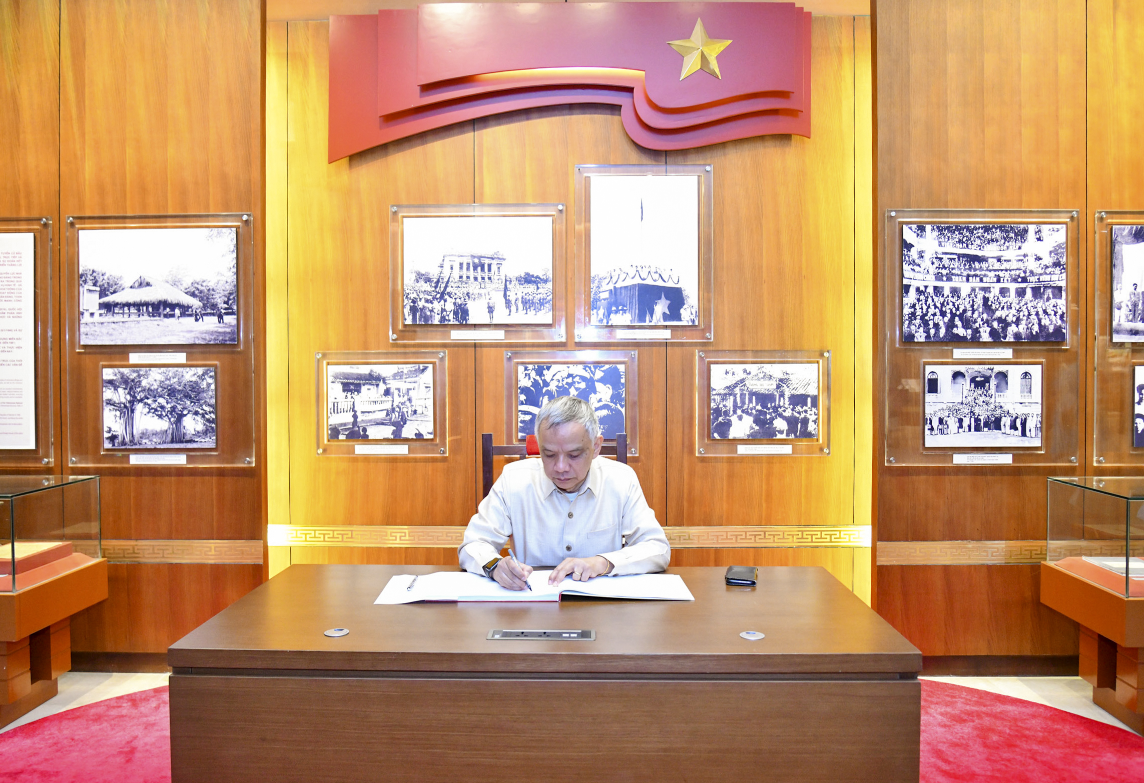Nhân dịp này, Phó Chủ tịch Quốc hội Sommad Pholsena đã ký Sổ vàng lưu niệm tại Phòng Truyền thống Quốc hội Việt Nam.