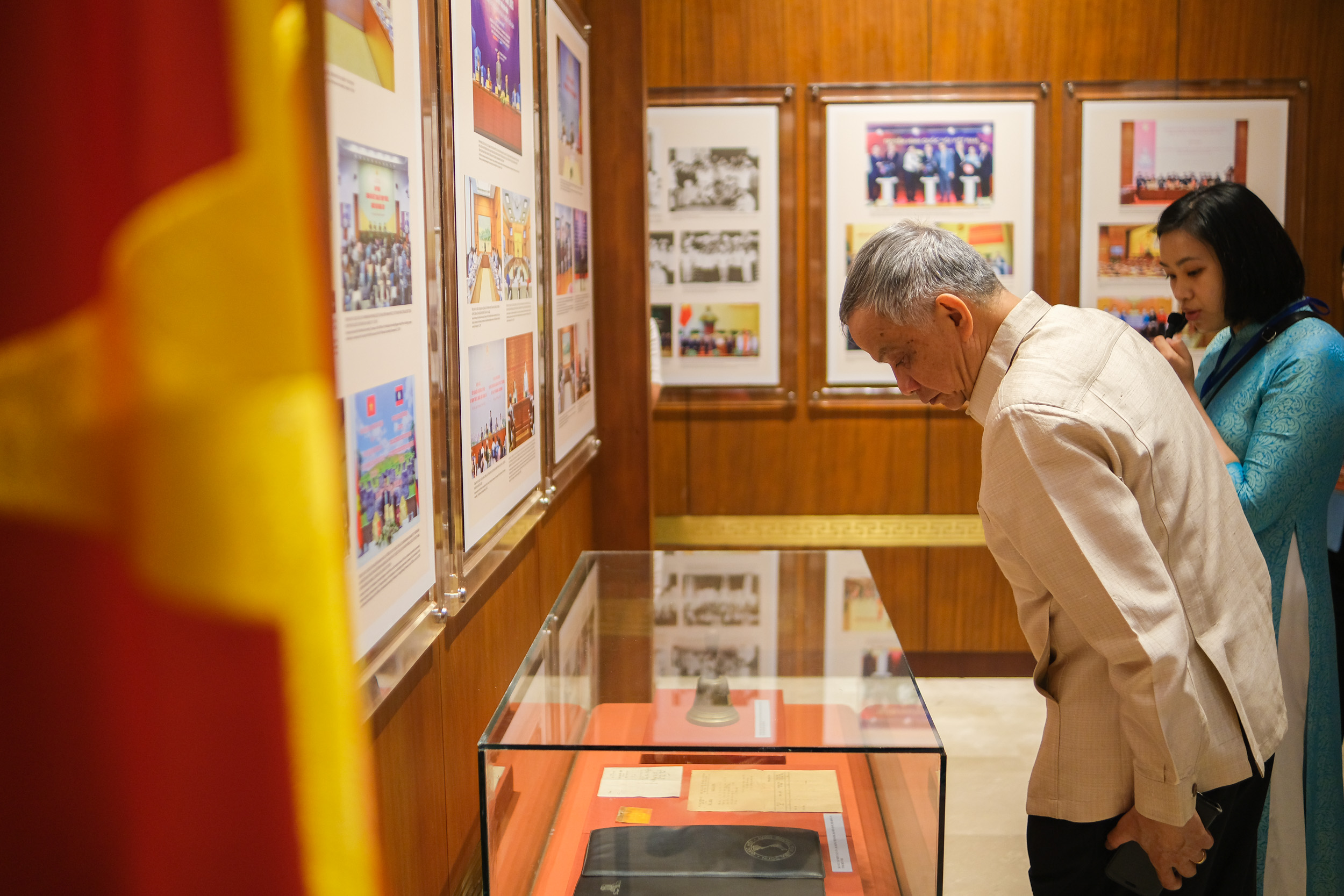 | Phó Chủ tịch Quốc hội Sommad Pholsena cùng Đoàn đại biểu Quốc hội Lào tham quan Phòng Truyền thống của Nhà Quốc hội, nghe giới thiệu những nét cơ bản trong lịch sử hình thành và phát triển của Quốc hội Việt Nam. |