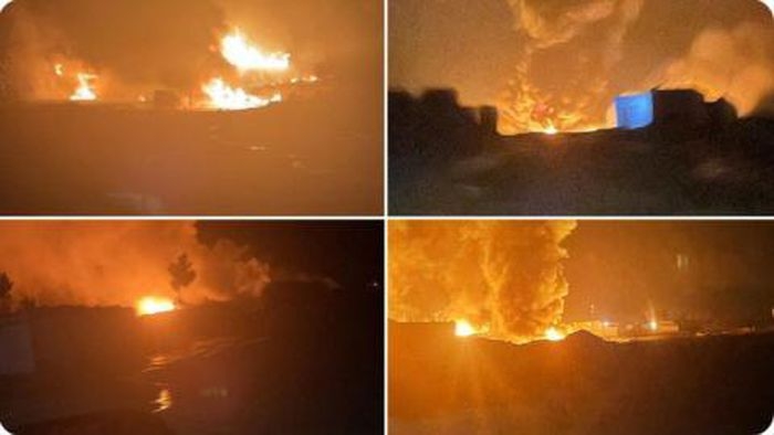 | Cơ sở dầu mỏ của thân Thổ bốc cháy. Ảnh: Internet |