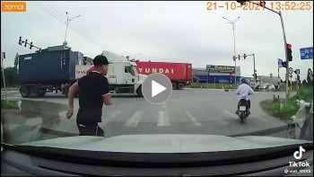 | Vụ việc được camera hành trình xe Container ghi lại tại ngã tư Đông Côi – TT Hồ - Thuận Thành – Bắc Ninh. |