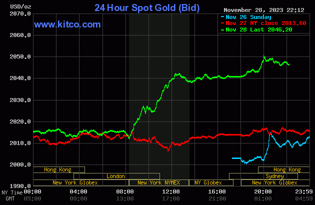 Giá vàng giao ngay trên Kitco hiện đang ở mức 2046,2 USD/ounce, tăng 32,6 USD, tương đương 1,62% so với chốt phiên trước.