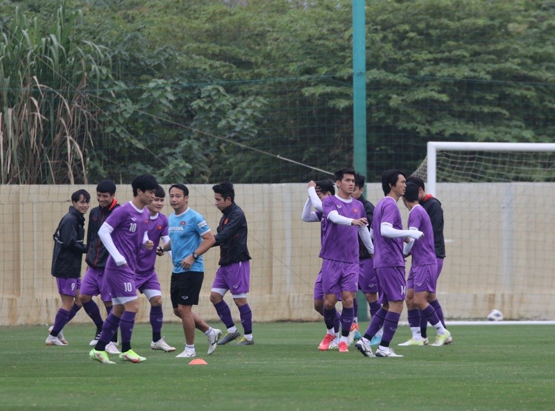 Thời điểm này, toàn đội đang thực hiện cách ly và hoạt động theo nguyên tắc bong bóng khép kín. Sau khi có kết quả xét nghiệm RT-PCR âm tính với COVID-19, thầy trò HLV Park Hang-seo đã được tạo điều kiện ra sân tập luyện. Các buổi tập trong thời gian cách ly chủ yếu nhằm giúp các cầu thủ duy trì nhịp vận động và cảm giác với bóng.
