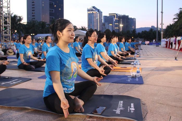 Hơn 1.500 người yêu thích yoga ở Đà Nẵng đã cùng thực hiện bài đồng diễn Chào mặt trời để lan tỏa thông điệp sống khỏe, sống tích cực và chủ động đến cộng đồng. Ảnh: Báo Tiền phong