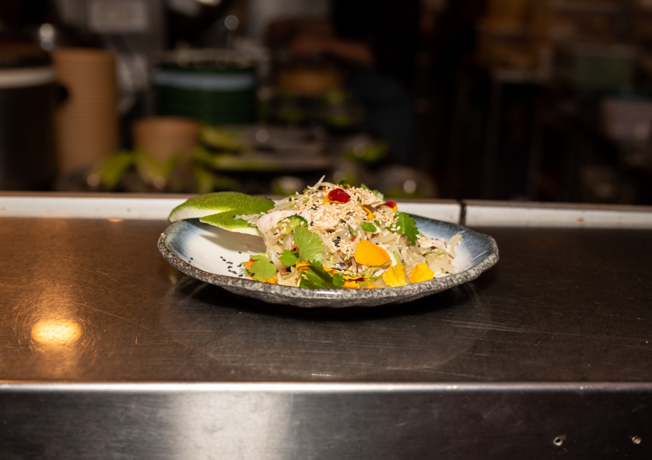 | Đầu bếp Israel tự làm món nộm bưởi. |