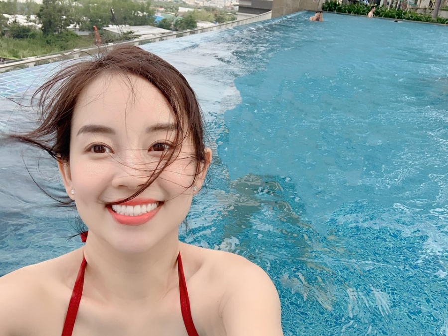 Đính kèm loạt khoảnh khắc con trai chơi đùa dưới nước trong chuyến du lịch, cựu diễn viên Nhật ký Vàng Anh chú thích: "Sáng Sài Gòn không khí thật thích quá. Mấy mẹ con bà cháu bơi từ sáng mà tới giờ vẫn chưa muốn lên".