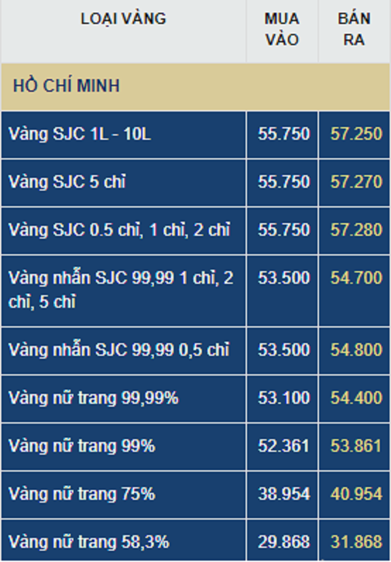 *Xem cập nhật giá vàng SJC hôm nay tại trang web chính thức của SJC: http://sjc.com.vn/giavang/