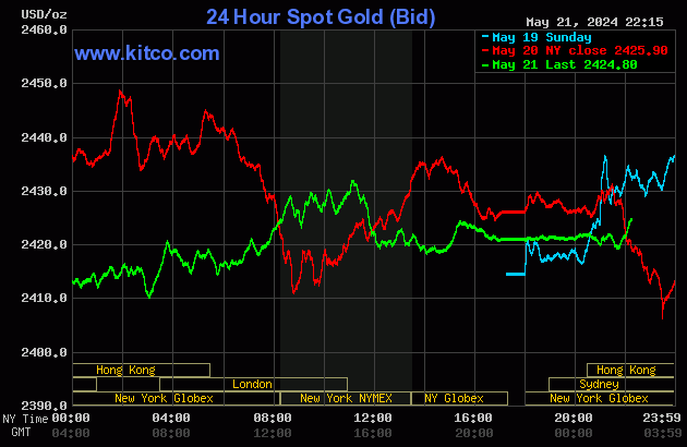 Hiện giá vàng giao ngay trên Kitco đang ở mức 2.424,8 USD/ounce, tăng 1,1 USD, tương đương 0,05% giá trị so với chốt phiên trước. Quy đổi theo tỷ giá tại Vietcombank, giá vàng thế giới đang được giao dịch ở mức 74,4 triệu đồng/lượng, thấp hơn giá vàng trong nước khoảng 14,5 triệu đồng/lượng.