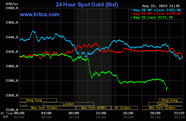 Hiện giá vàng giao ngay trên Kitco đang ở mức 2.372,7 USD/ounce, giảm 48,1 USD, tương đương 1,99% giá trị so với chốt phiên trước. Quy đổi theo tỷ giá tại Vietcombank, giá vàng thế giới đang được giao dịch ở mức 72,8 triệu đồng/lượng, thấp hơn giá vàng trong nước khoảng 15,2 triệu đồng/lượng.
