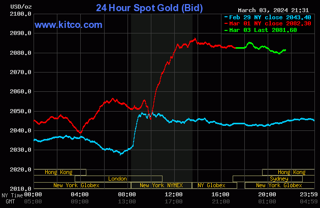 Trên thị trường thế giới, giá vàng có sự đi xuống. Hiện giá vàng giao dịch trên Kitco đang ở mức 2.081,6 USD/ounce, giảm 0,7 USD, tương đương 0,03% giá trị so với chốt phiên trước. Quy đổi theo tỷ giá tại Vietcombank, giá vàng thế giới đang được giao dịch ở mức 61,7 triệu đồng/lượng, thấp hơn giá vàng trong nước khoảng 16,5 triệu đồng/lượng.