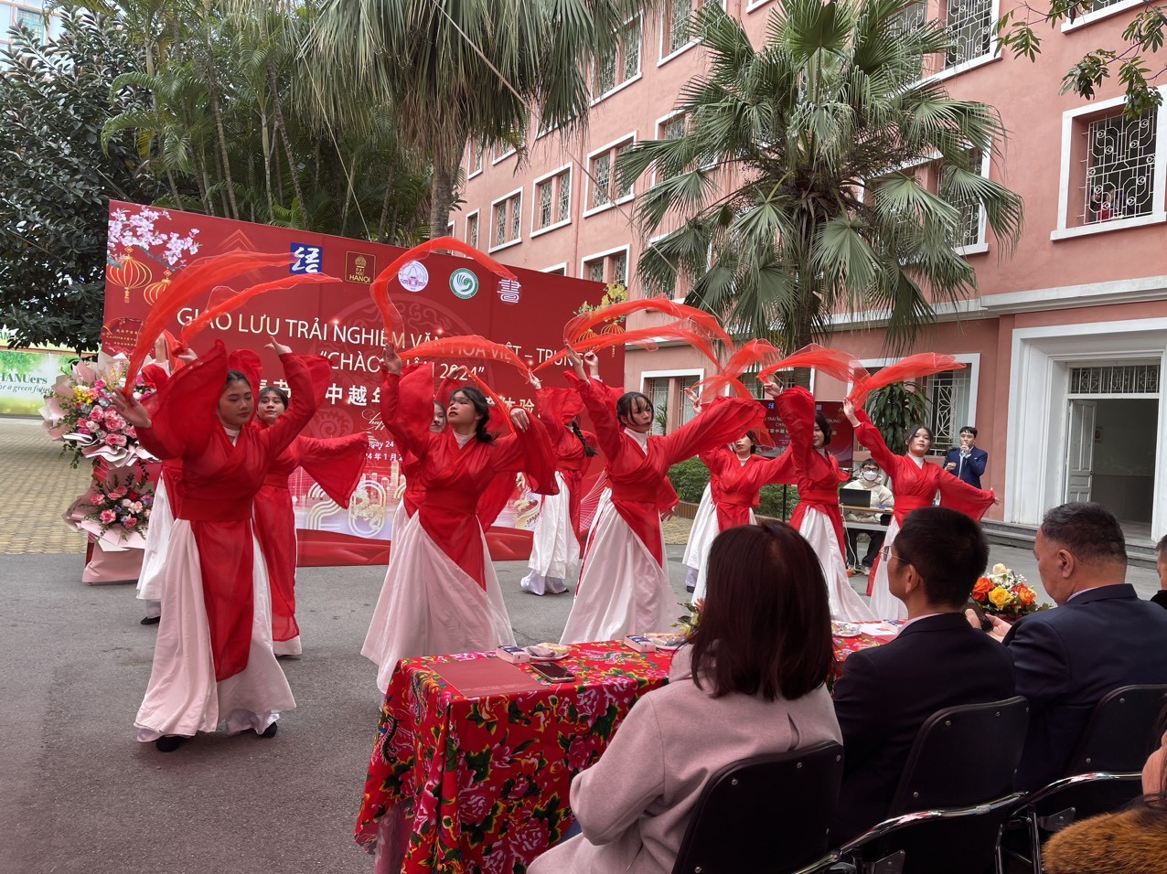 Chương trình Giao lưu trải nghiệm văn hóa Việt - Trung “Chào Xuân 2024” với các hoạt động trải nghiệm đặc sắc: Ẩm thực Trung Hoa và Việt Nam; Vẽ tranh thủy mặc nghệ thuật; Cắt giấy Trung Hoa trang trí; Áo dài Việt Nam và Hán phục cổ trang; Viết chữ thư pháp...