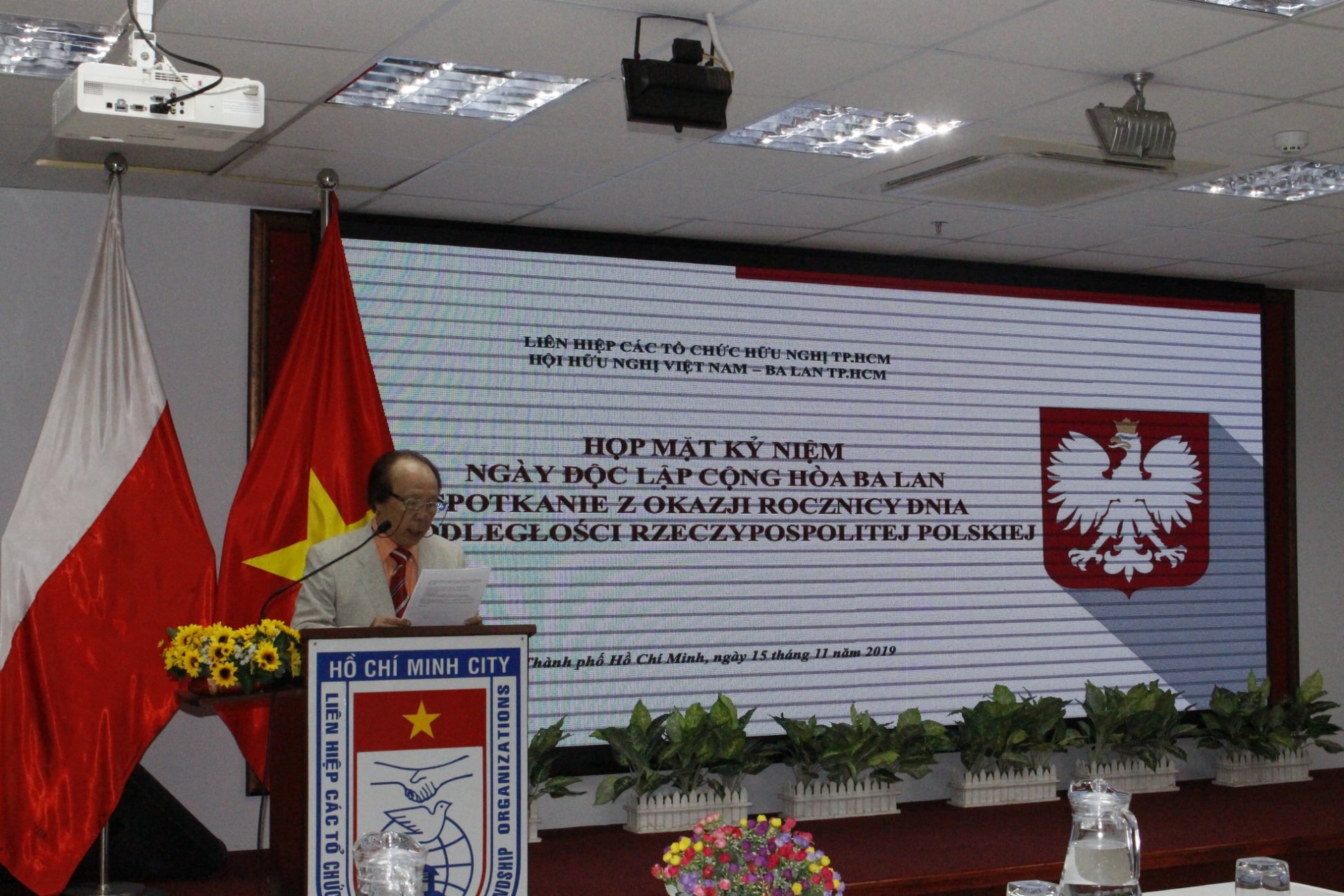 Chủ tịch Hội hữu nghị Việt Nam – Ba Lan TP.HCM cũng bày tỏ sự cảm kích và cám ơn sự hiện diện của Ngài Phó Đại sứ Maciej Doszynski đến đây thể hiện tình cảm, tình hữu nghị truyền thống của Ba Lan với nhân dân Việt Nam nói chung, TP.HCM nói riêng.