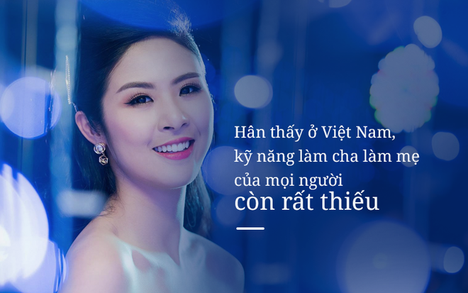 Hân thấy ở Việt Nam, kỹ năng làm cha làm mẹ của mọi người còn rất thiếu. Không phải cha mẹ nào cũng có kỹ năng để mà giáo dục con, dậy dỗ con, trò chuyện với con như những người bạn. 10 cặp bố mẹ chắc được 1 cặp. Trong cặp đấy đôi khi chỉ có mẹ là người thường xuyên giao lưu chia sẻ với các con.