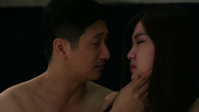 | Lương Thanh cùng Ngọc Quỳnh trong một phân cảnh của "Hoa hồng trên ngực trái" |