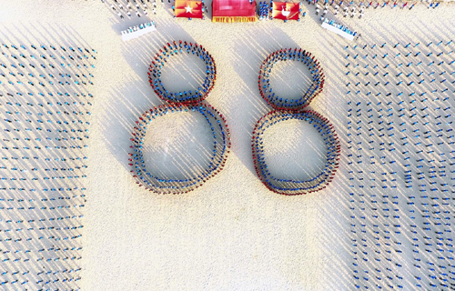 Toàn cảnh buổi đồng diễn xếp thành hình số 88 trên bãi biển.