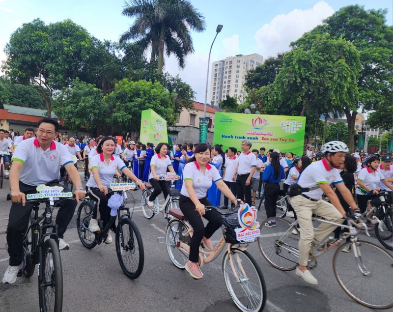 | Ngày hội đạp xe Hành trình xanh “Sắc sen Tây Hồ” (Ảnh: T.L). |