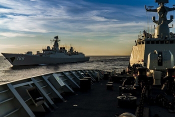 | Tàu chiến Úc đang tham gia tập trận với hải quân Mỹ và Nhật Bản. Ảnh: DOF |