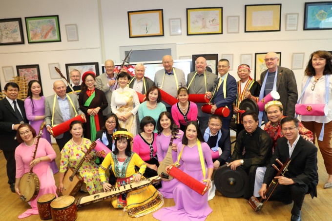 | Buổi giới thiệu "Sắc màu trang phục truyền thống và Nhạc cụ dân tộc Việt Nam" do Câu lạc bộ Văn nghệ tháng Mười tổ chức tại Berlin (Nguồn: Viet-bao.de). |