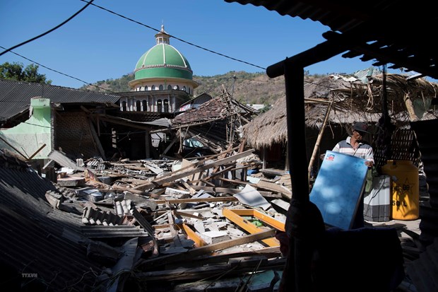 Cảnh đổ nát trên đảo Lombok sau trận động đất năm 2018. (Ảnh: THX/TTXVN)