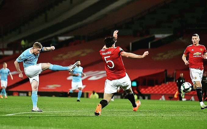Bị dẫn bàn trước, MU hoàn toàn thi đấu lép vế so với đội khách. Đến phút 83, hy vọng cho MU hoàn toàn chấm dứt lại từ một pha đá phạt: Wan-Bissaka đánh đầu phá ra một quả phạt góc của De Bruyne nhưng lại đưa bóng đúng tầm cho Fernandinho sút xa tung lưới MU.