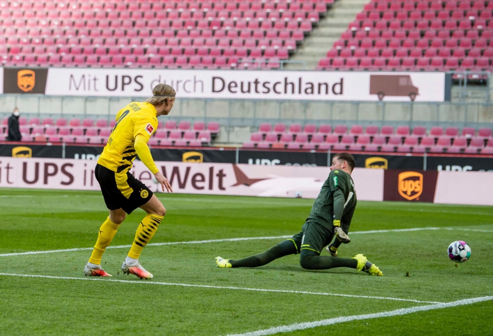 Đúng phút thi đấu chính thức cuối cùng, tài năng trẻ mới 19 tuổi Ansgar Knauff bứt tốc ấn tượng bên cánh phải trước khi căng ngang để Haaland dứt điểm cắt mặt để lập cú đúp và ấn định kết quả hòa 2 đều cho Dortmund.
