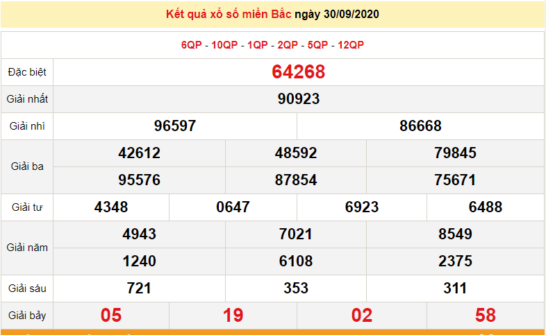 Kết quả xổ số Miền Bắc (XSMB) mới nhất hôm nay 2/10/2020