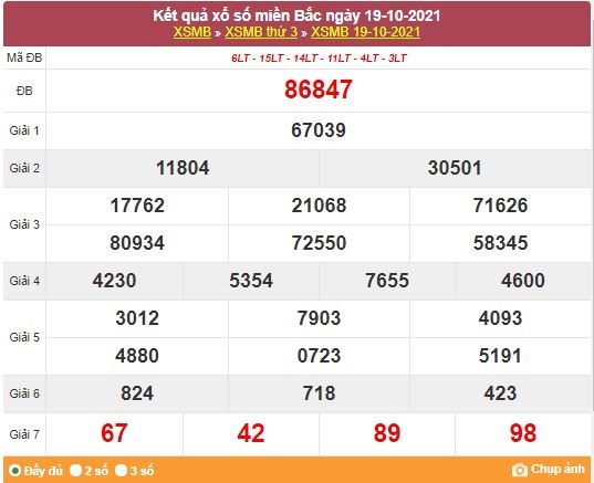 XSMB » xem lại XSMB thứ Ba » XSMB ngày 19/10/2021: