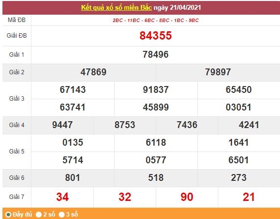 XSMB » xem lại XSMB thứ Tư » XSMB ngày 21/4/2021: