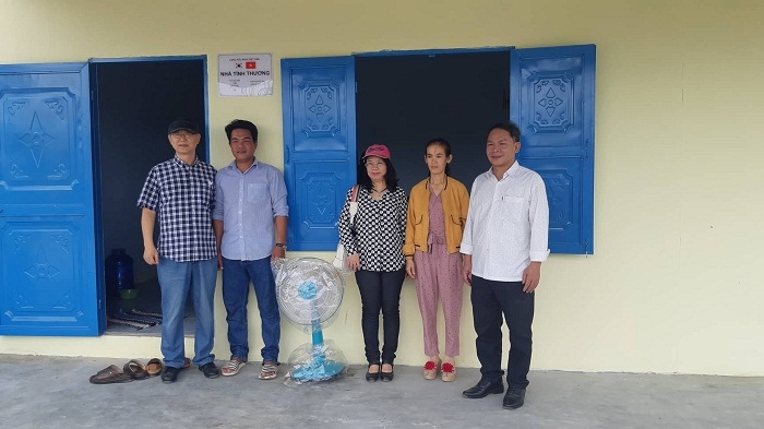 | Đại diện tổ chức ACEF trao nhà cho người dân. (Ảnh: UBND xã Phú Hoà) |