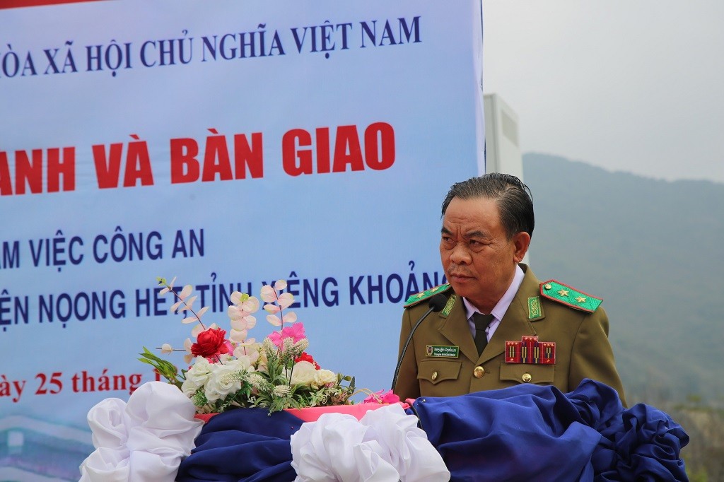 Phát biểu tại buổi lễ, đồng chí Trung tướng Nguyễn Duy Ngọc, Thứ trưởng Bộ Công an Việt Nam nhấn mạnh, từ sau Lễ khởi công trụ sở Công an bản đầu tiên đến nay, các công việc triển khai xây dựng trụ sở Công an các bản còn lại trên dọc tuyến biên giới giữa hai nước đã được hai bên phối hợp chặt chẽ, triển khai quyết liệt, vượt qua nhiều khó khăn, thách thức do đại dịch Covid-19 tác động để hoàn thành. Trong đó, Công an tỉnh Nghệ An và Công an tỉnh Xiêng Khoảng là một trong những đơn vị đi đầu trong công tác này.